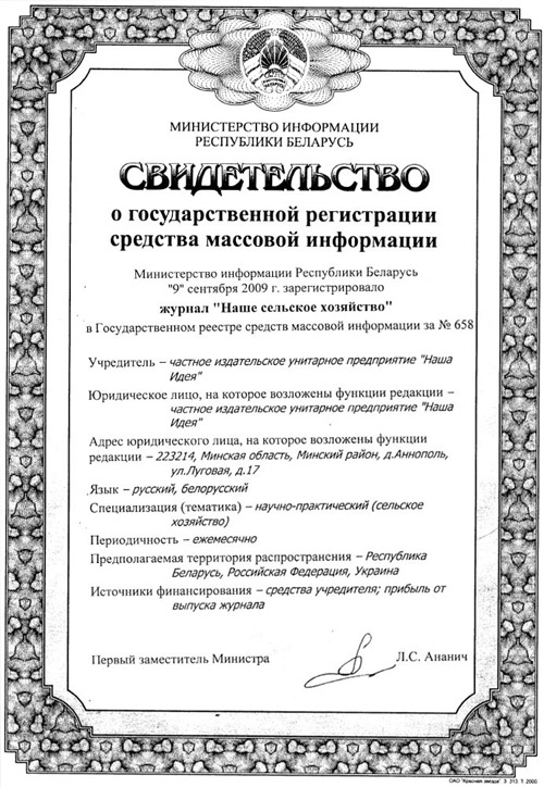 ежемесячный журнал о сельском хозяйстве Беларуси